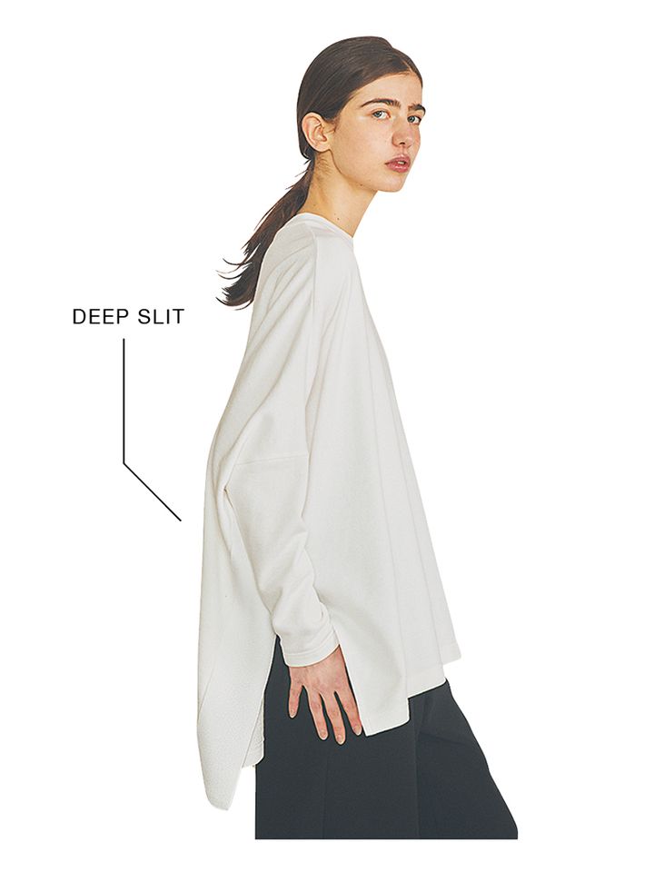 スエット/LE PHIL(LE PHIL NEWoMan 新宿店) 動くたびにムーディな余韻を残す、すそのドレープ。サイド部分のリブ編みでリズムづけ。