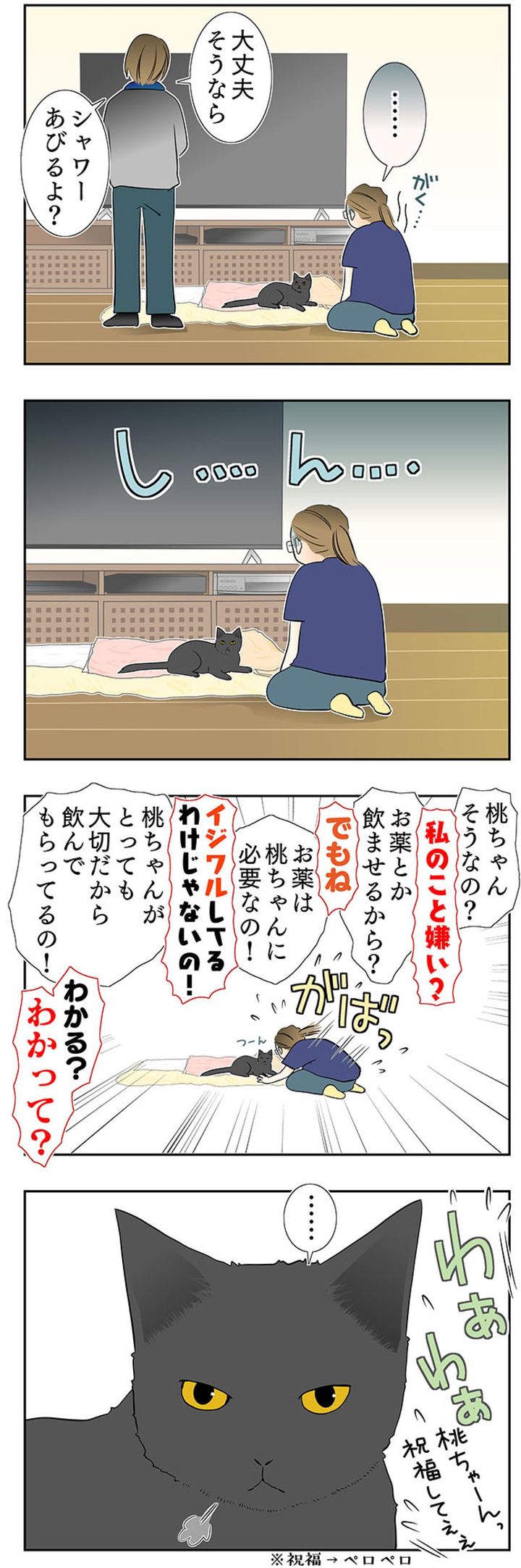「祝福してー」という飼い主に桃姐は?