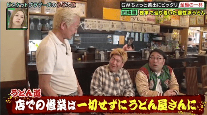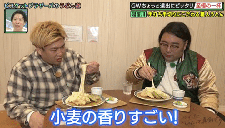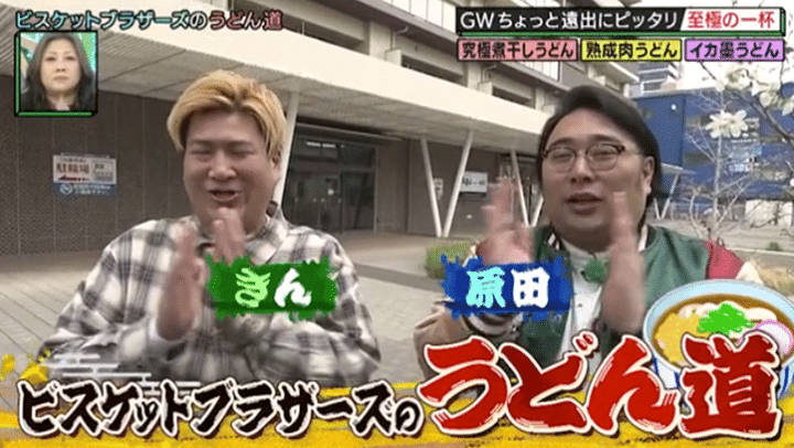 “うどん県”こと香川県出身のビスケットブラザーズ・きんが、うどんと真剣に向き合う店主を訪ね、自らの“うどん道”を極める「ビスケットブラザーズのうどん道」はゴールデンウィーク直前企画! 休日にちょっと足を延ばして行きたくなる大阪市外のうどんの名店を、今回も相方の原田と巡る。