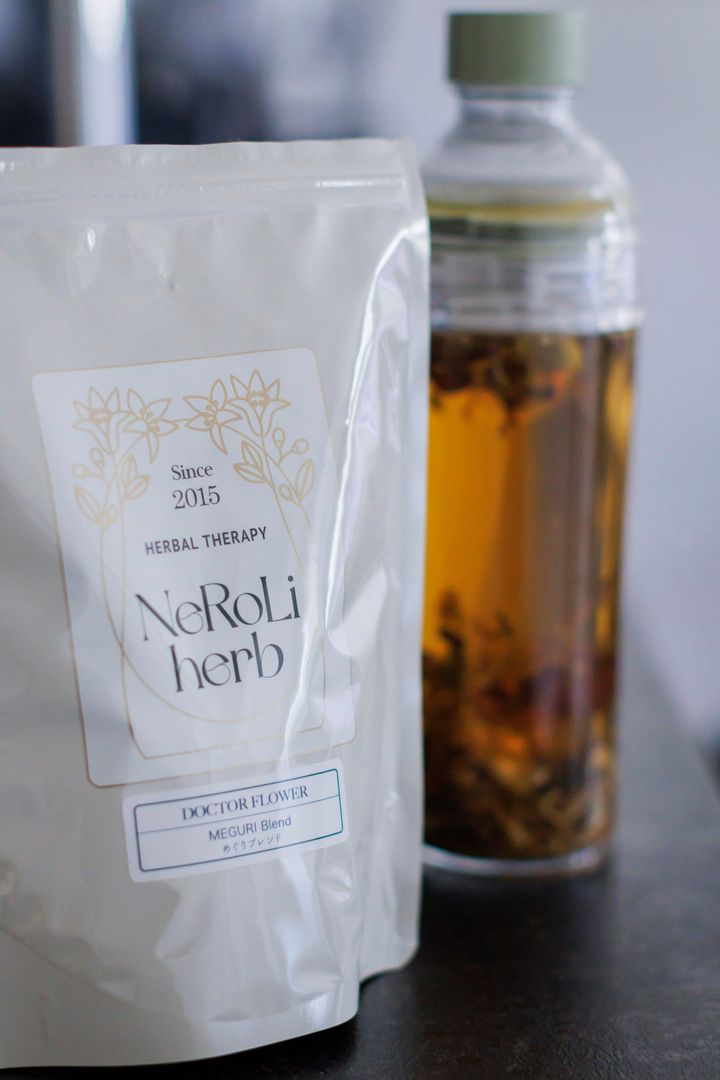 「NeRoLi herb(ネロリハーブ)」は、植物療法士の菅原あゆみ氏が主宰するオリジナルブレンドのハーブティー専門店。美容研究家や女優、モデルが愛飲することでも知られ、美容や健康に感度の高い層から熱い支持を集める。広美さんは「めぐりブレンド」をセレクト。 YOSHINORI.KUBO