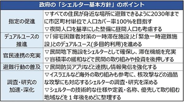 ——政府がシェルター整備に関する基本方針を決定しました。