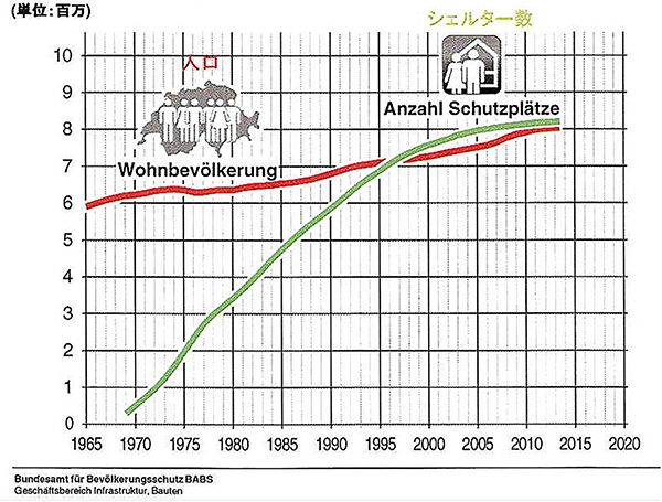 スイスは政府がシェルターの設計基準を設け、1970年代からほぼ30年かけて、800万人の国民全員が避難できるシェルターを整備しました。より高度な永世中立を維持するため、他国に脅されても徹底的に抵抗できるように持つべきものは持つ、という考えで整備を進めたわけです。同じ考えに基づいて、スイスは永世中立国なのに、近代的な軍隊も持っています。