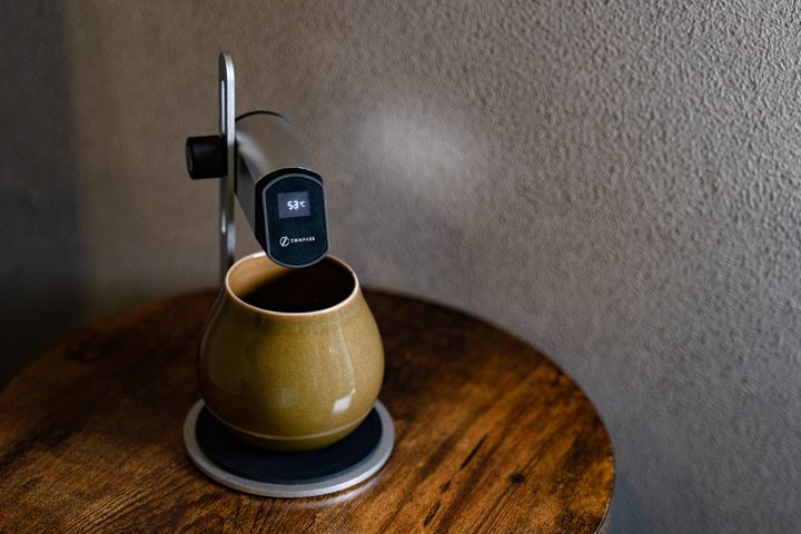 コーヒーを提供する時は、美味しさが最も際立つ55℃〜60℃前後の適温を専用の機器で確認してから蓋を閉じ、徹底的に温度管理をします。そうすることで蓋を開けた瞬間に立ち昇る鮮烈な香りを堪能しながらコーヒーを味わうことができます。器で鼻を覆い温度と香りの変化を五感で楽しんでください。