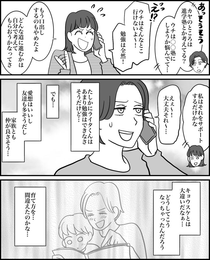キョウスケとの差を痛感し、私はふと「子どもの育て方を間違えたのかな……」と思ってしまうのでした。