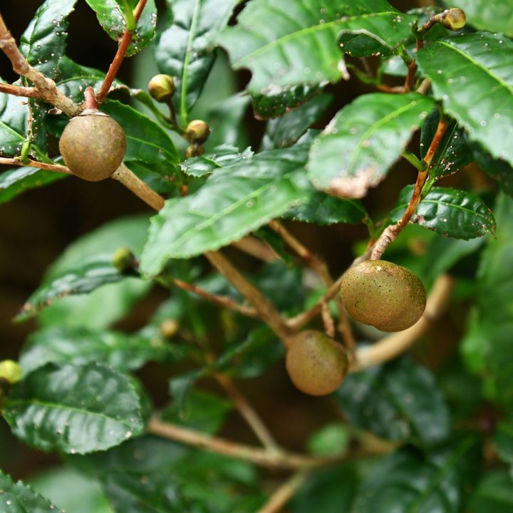 耕作放棄地となった茶畑で育つ茶の実 Hearst Owned