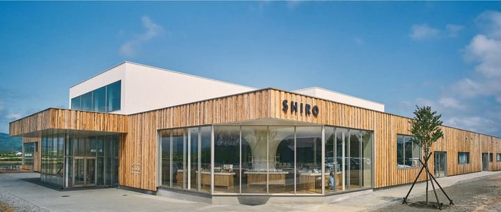 フレグランスやスキンケアで人気の「SHIRO(シロ)」も、地域活性化に積極的に取り組むビューティブランドのひとつ。その代表的な例が、2023年4月、北海道砂川市にオープンした「みんなの工場」(写真上)。砂川市は、「SHIRO」の前身ブランドである「ローレル」が誕生した町だ。