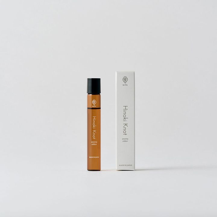 温浴サロンで使うヒノキパウダー以外に、オリジナルプロダクトブランドの「nifu」でも、吉野の林地残材を生かしたアイテムを展開。こちらのロールオン美容オイルには、保湿力の高いホホバ種子油に、高樹齢ヒノキの“節(Knot)”から抽出した希少な精油をブレンド。森の中にいるような癒しの香りで気分をリフレッシュできる。