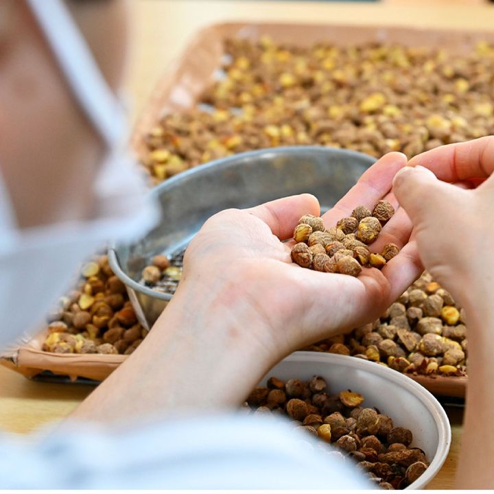 茶の実の選定作業。ひと瓶20mlのために、約400粒の実が必要 Hearst Owned