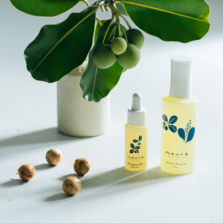 沖縄県・宮古島の北に位置する小さな離島、池間島。2019年にスタートした「naure(ナウレ)」は、この島の在来樹種、テリハボクの木の種から抽出した“タマヌオイル”を使ったスキンケアブランドだ。タマヌオイルは、太平洋地域で古くから火傷や傷の治療に使われるなど、炎症を抑える効果が高いことで知られており、美容業界でも”万能オイル”として支持を集めている。