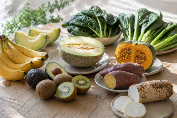 カリウムは、生の「果物」や「野菜」に豊富に含まれている。果物で代表的なものは、バナナ、アボカド、キウイフルーツ、メロンなど。手軽に食べられるものが多いので、朝食や間食にぴったりだろう。野菜では、ほうれん草、小松菜、かぼちゃ、サツマイモ、長芋などが挙げられる。