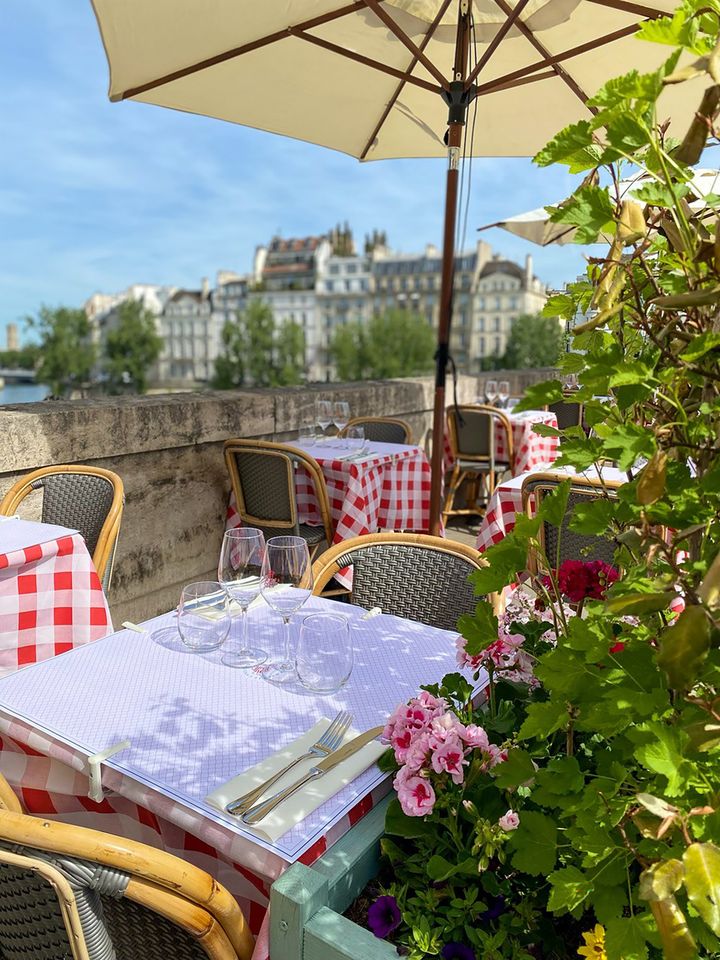 晴天のパリ、セーヌ河にかかる橋上というユニークなテラス席が嬉しいロティスリィ・ダルジャン。