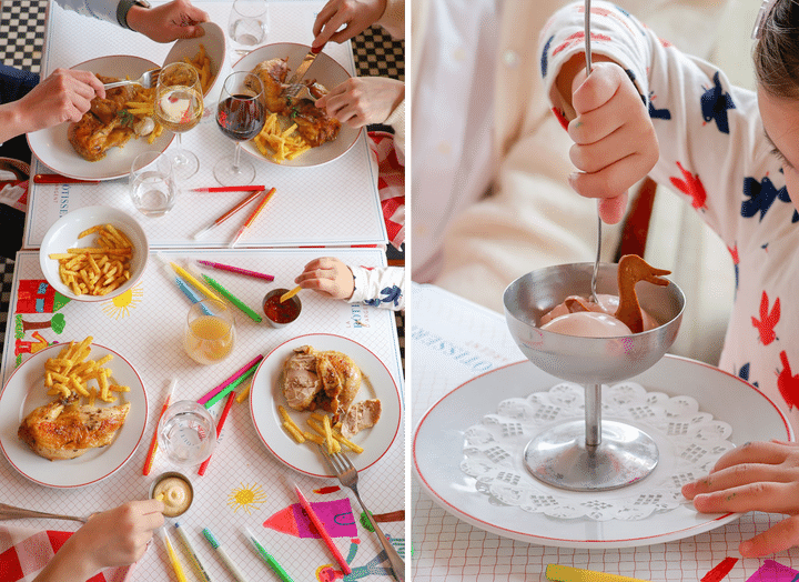 最近、ロティスリー・ダルジャンでは毎週水曜日に子供も一緒に食事を楽しめるメニューをスタートした。フランス農務省が高品質と認めた品に与えるLabel Rougeの鳥肉のローストが主役。皮をカリッと焼いて、焼き汁をかけて……添えにはフライドポテトだ。10歳以下の子供は、鴨のフォルムのビスキュイが添えられたイチゴ味で人気のお菓子フレーズ・タガダ風味のアイスクリームが無料でサービスされる。テラス席あるいは店内で、子供も退屈しないで家族揃っておいしい食事のひと時を!