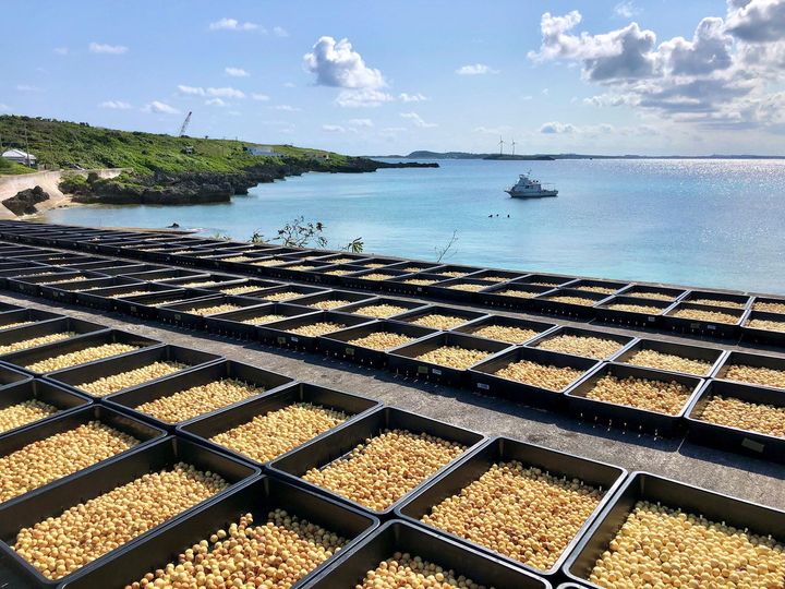 働き世代が島外へ流出し、過疎高齢化が進む地域に必要なのは、特産品をつくる大きな工場や数百人単位で訪れるマス・ツーリズムではなく、いつでもどこでも自分のペースでできるたくさんの「小さな仕事」だと考えた三輪さんたち。タマヌオイルのもととなるテリハボクの種の収穫や殻割りなどの仕事を、島の人々に依頼している。