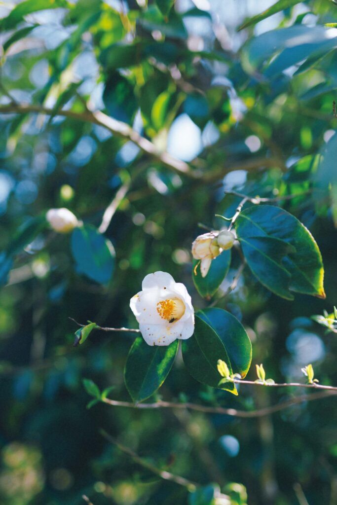 細川さんが最も大切にしている花のひとつ、白い椿。