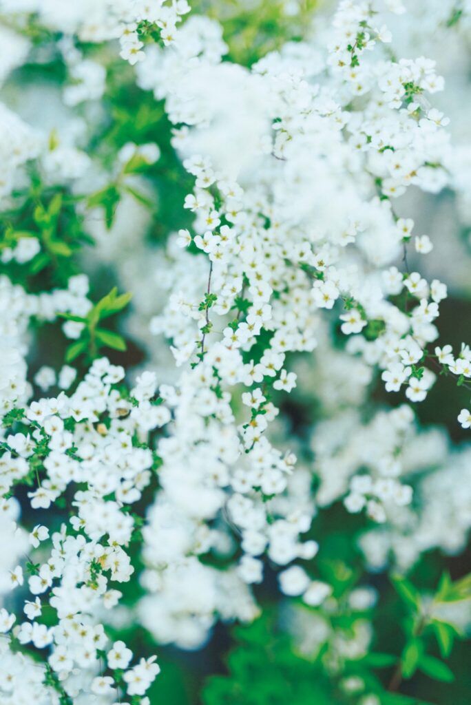 初春の庭を彩る、満開のユキヤナギ。