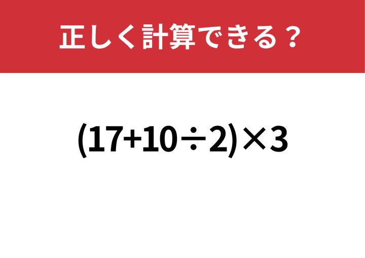 3. 意外と難しい?「(17+10÷2)×3」正しく計算できる?