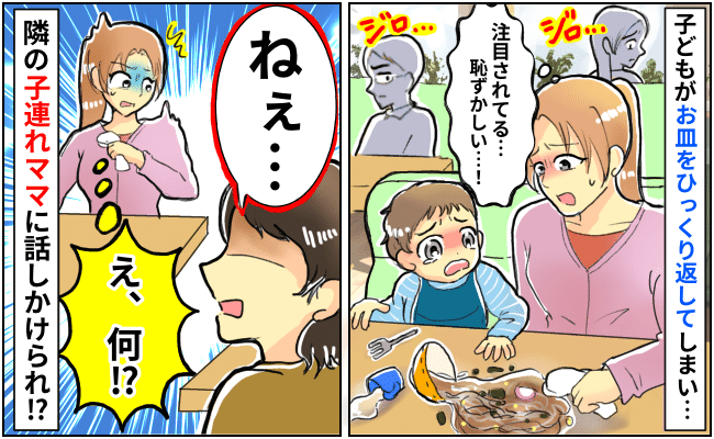 「恥ずかしい…」外食中、子どもがお皿をひっくり返しパニック!隣席のママの発言に思わず固まったワケ