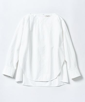白ボートネックシャツ/デミルクス ビームス(デミルクス ビームス 新宿) 前はすっきり、後ろはお尻を隠せるすそデザイン。横広のネックがエレガントな雰囲気をあと押し。