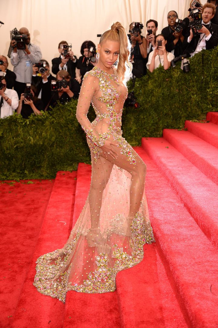 2015年のレッドカーペットに最後に現れ、すべてをかっさらったのがビヨンセ。リカルド・ティッシによる「ジバンシィ」のカスタムドレスは、戦略的に配置された色とりどりのクリスタル以外、ほぼ透明。高い位置で結んだポニーテールと、肌とドレスが一体化したような神々しい姿は、今なおネイキッドドレスの金字塔として君臨し続ける。