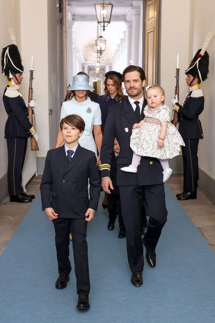国王の第2子、カール・フィリップ王子と妻のソフィア妃も子どもたちと出席。10歳になったアレクサンダー王子、8歳のガブリエル王子、5歳のユリアン王子がスーツ姿を披露した。今年2月に1歳の誕生日を迎えたイネス王女はカール・フィリップ王子に抱かれて登場。不思議そうな表情でカメラを見つめていた。ソフィア妃はつばの大きな帽子をかぶって出席。顔が隠れてしまっていたのを残念がる声も、ロイヤルファンから上がっている。
