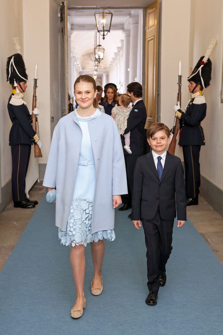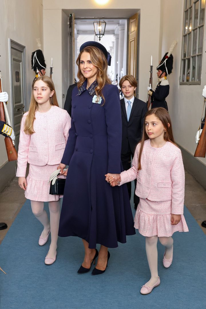 国王の第3子のマデレーン王女も、夫のクリストファー・オニールや子どもたちとともに登場。12歳のレオノール王女と8歳のアドリアンネ王女はお揃いのピンクのスーツ、白いタイツ、ピンクのフラットシューズというプリンセススタイルで出席していた。10歳になったニコラス王子の姿も。